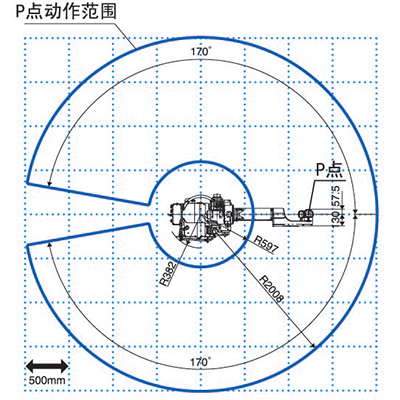 | 动作范围 | 基本轴J1 | ±170°(±50°) |