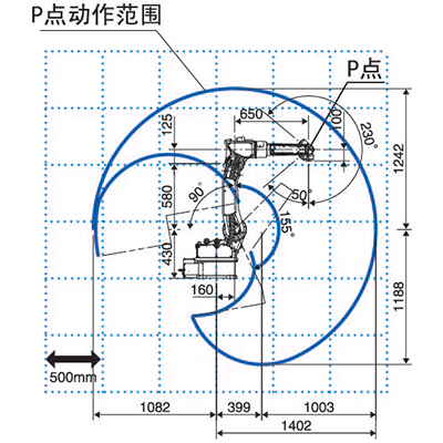 | 动作范围 | 基本轴J1 | ±170°(±50°) |